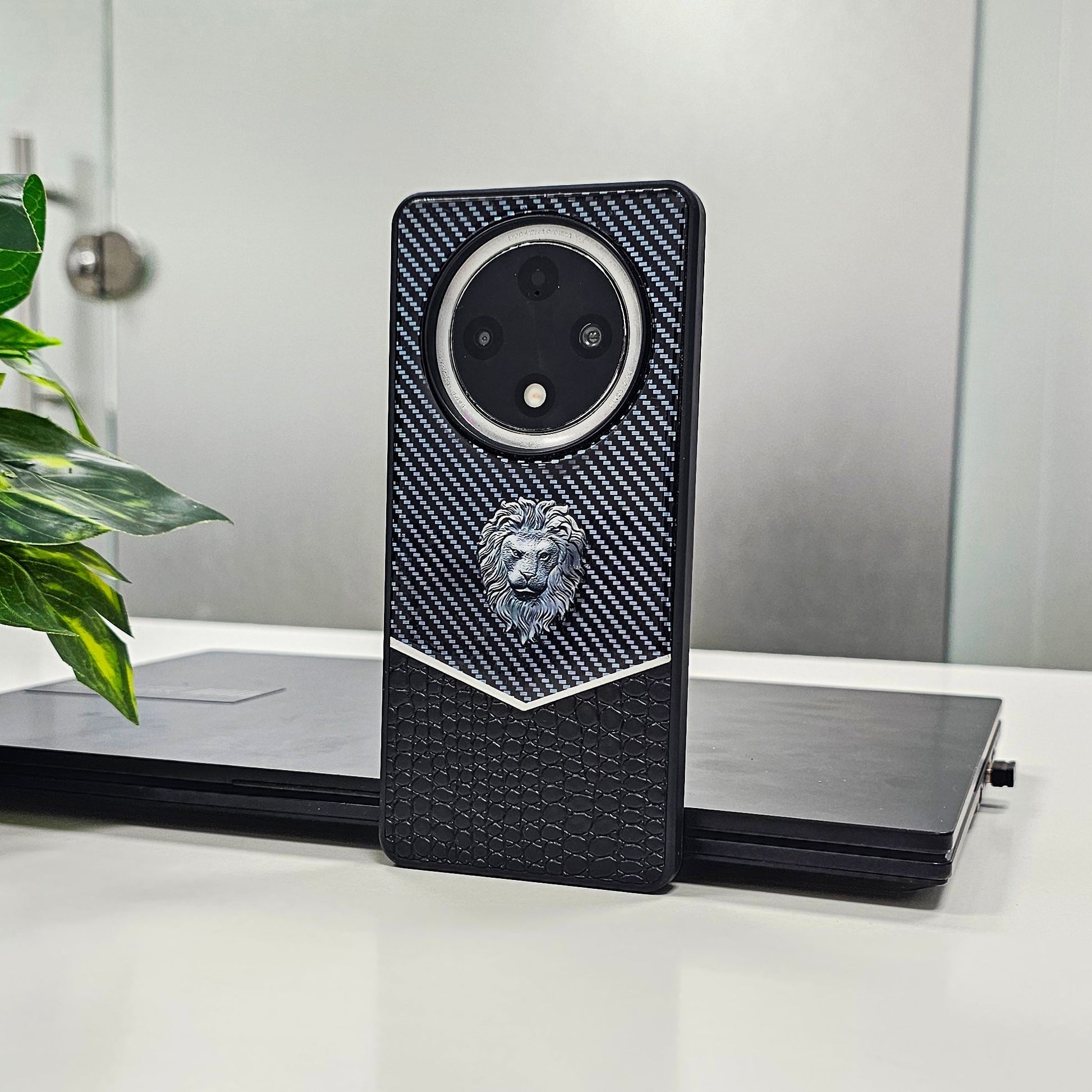 OPPO F27 PRO+ 5G Luxury Lion Pattern Leather And Liquid Silicone Case