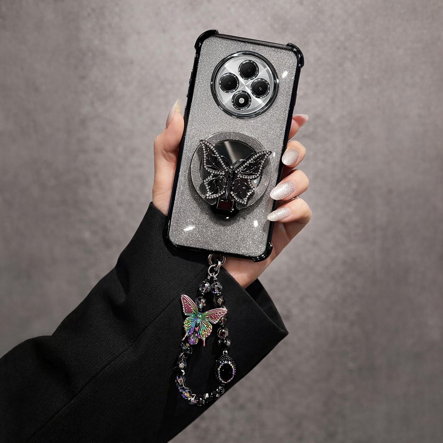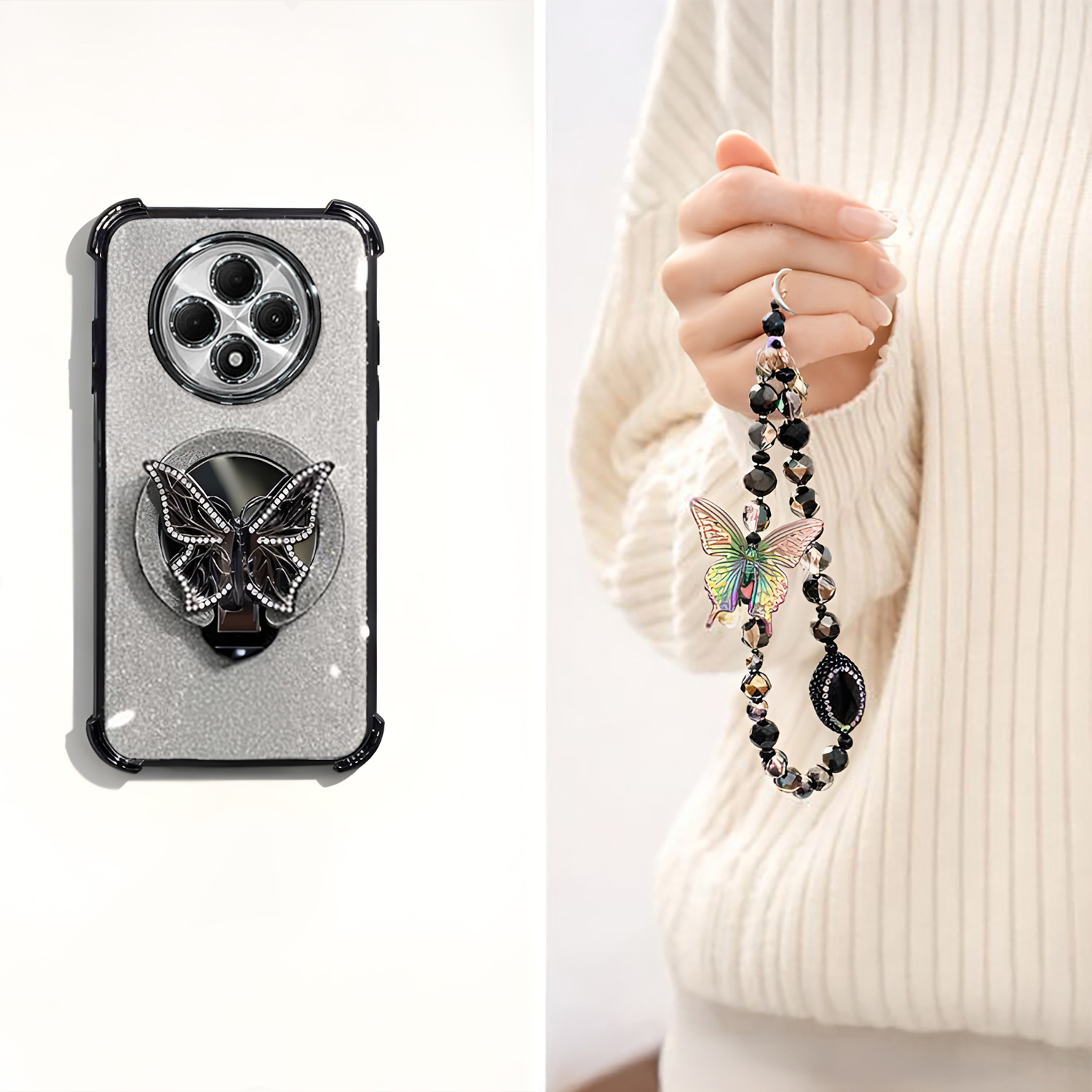 Give your Oppo F27 Pro Plus 5G stylish protection with this elegant butterfly stand case. It keeps your phone safe from daily drops and bumps while adding a soft, feminine look. The built-in butterfly stand makes hands-free viewing easy, and the charm strap adds a cute, playful touch.
