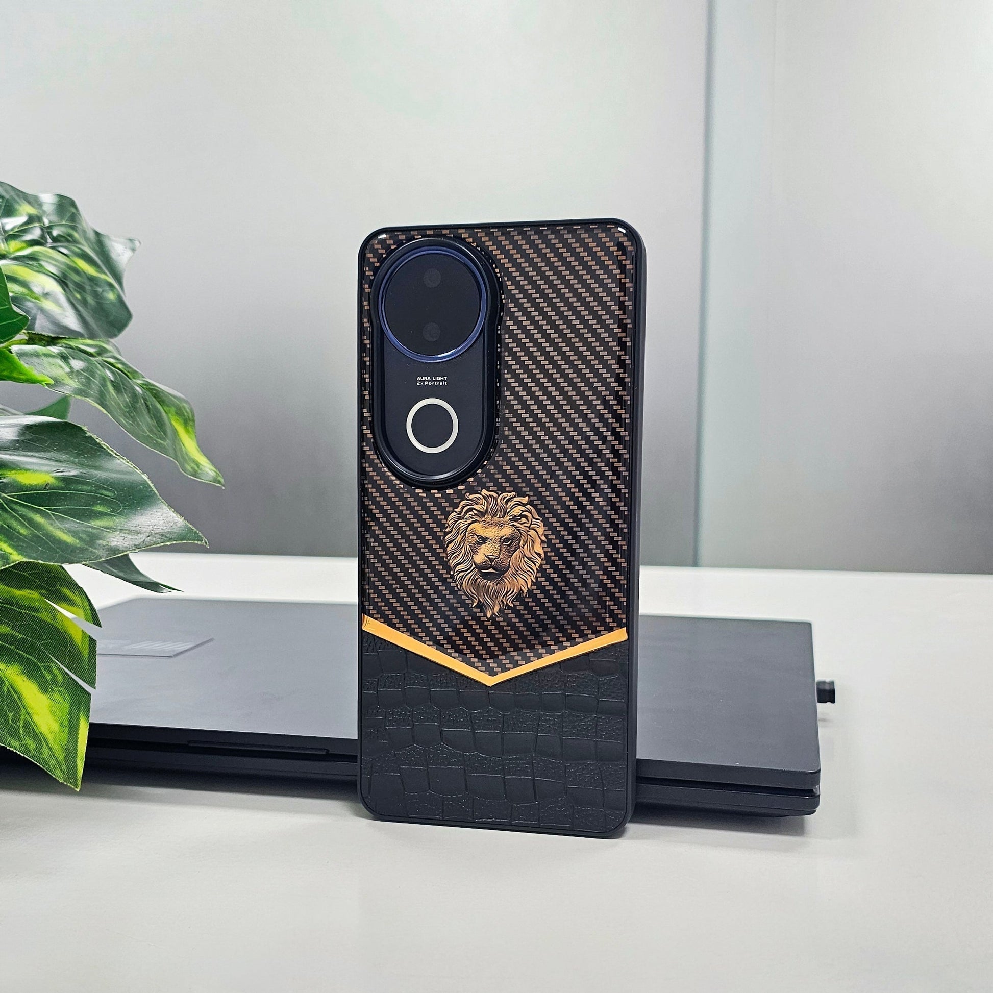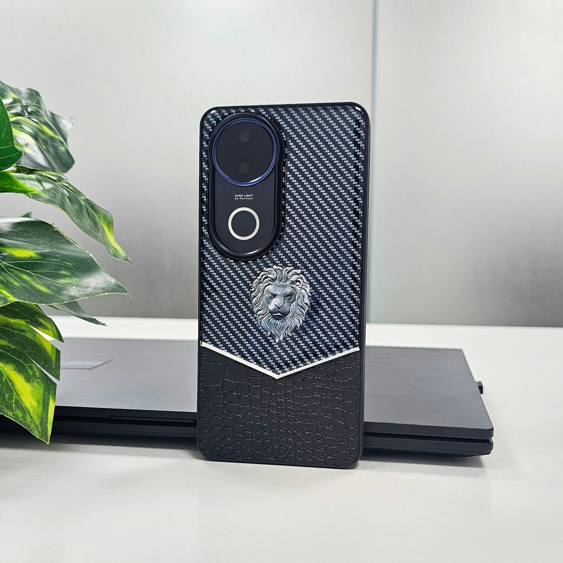 Vivo V50 5G Luxury Lion Pattern Leather And Liquid Silicone Case