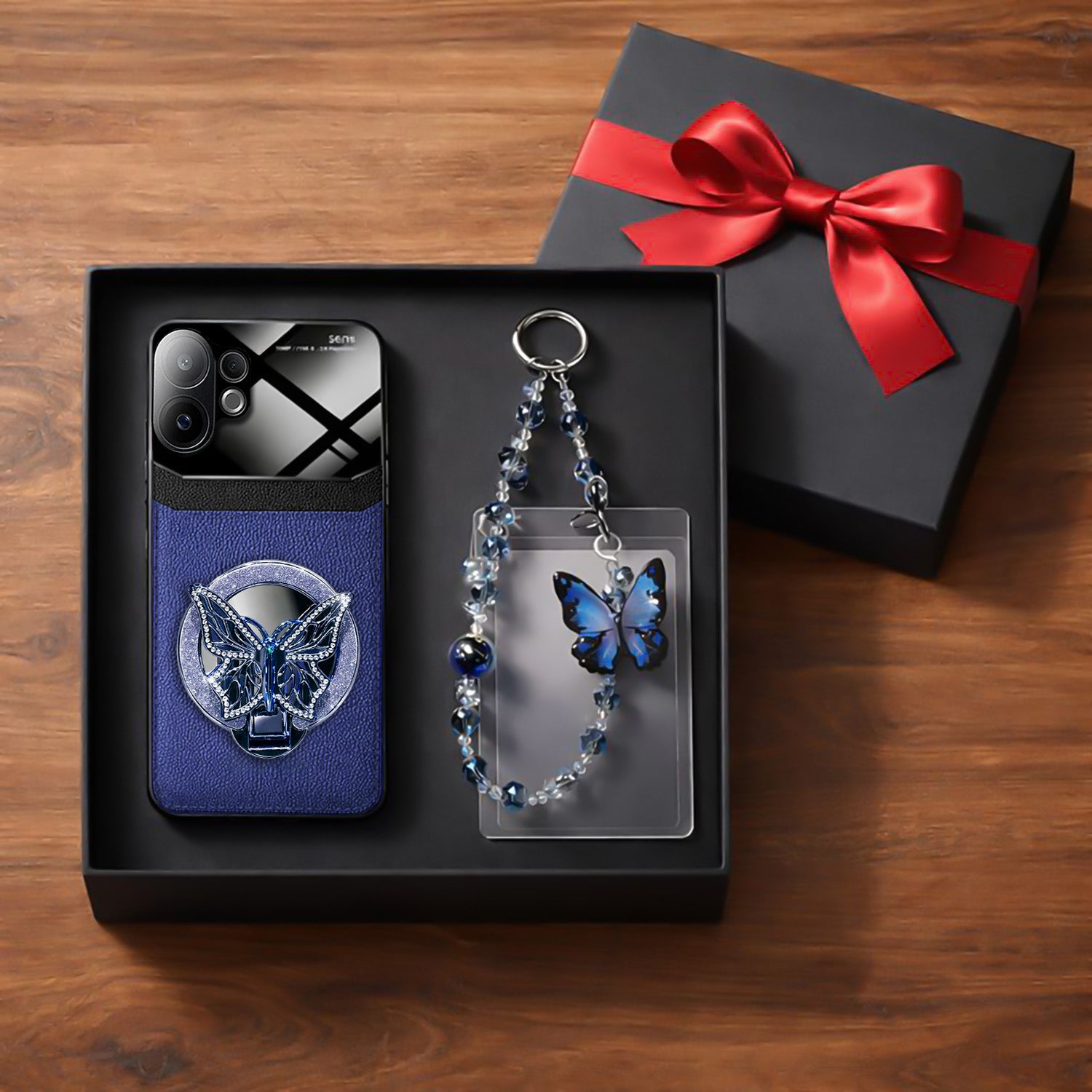 Premium leather case for Vivo V60 5G with butterfly stand, camera lens protection, and a stylish charm strap.